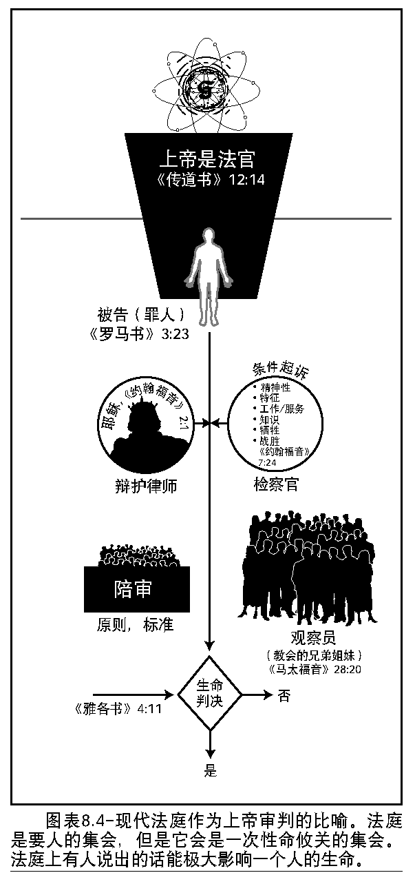 這是一個非常粗淺的觀念,完全不能與上帝默示的《聖經》協調一致。這個概念是取自我們的主講述有關綿羊與山羊的寓言,對於這個寓言過於注重字面意義的解釋。(參看《馬太福音》25:31-46。)它企圖對比喻性的寓言,強行作出字面上的解釋,可謂荒謬。寓言決不能按照字面解釋,而只是通過在許多方面與其相似的事物上作為真理的圖解。如果這個寓言是對審判實施方式的陳述,那麼就正如寓言所說,指的是字義上的綿羊和山羊,根本不是指人類。現在,讓我們從更符合《聖經》和更理性的觀點來考慮這個問題,上帝所指定的重大審判之日的工作與結果,應該合理的與《聖經》中所有的寓言和象徵的結論互相符合一致。 審判這個詞語的含意比僅是單純的判決還要具有更多的意義。它包括試煉的目的,也包括根據試煉而所作出的決定。不但英語中的審判一詞可以這樣正確地理解,並且在希臘文中,該詞的正確意思也是這樣解釋。 |